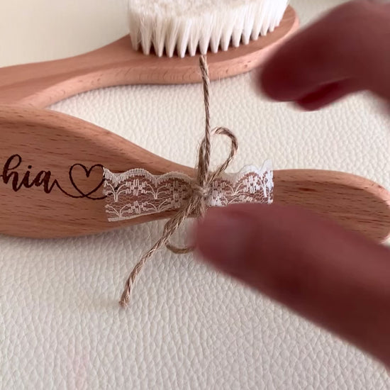 Diese hochwertige personalisierte Babyhaarbürste mit weichen Borsten aus Ziegenhaar und Buchenholz , ist nicht nur ideal für die tägliche sanfte Pflege von feinem Babyhaar und empfindlicher Kopfhaut, sondern auch eine ganz besonderes Erinnerungsgeschenk für Neugeborene, zur Taufe oder zum Geburtstag.